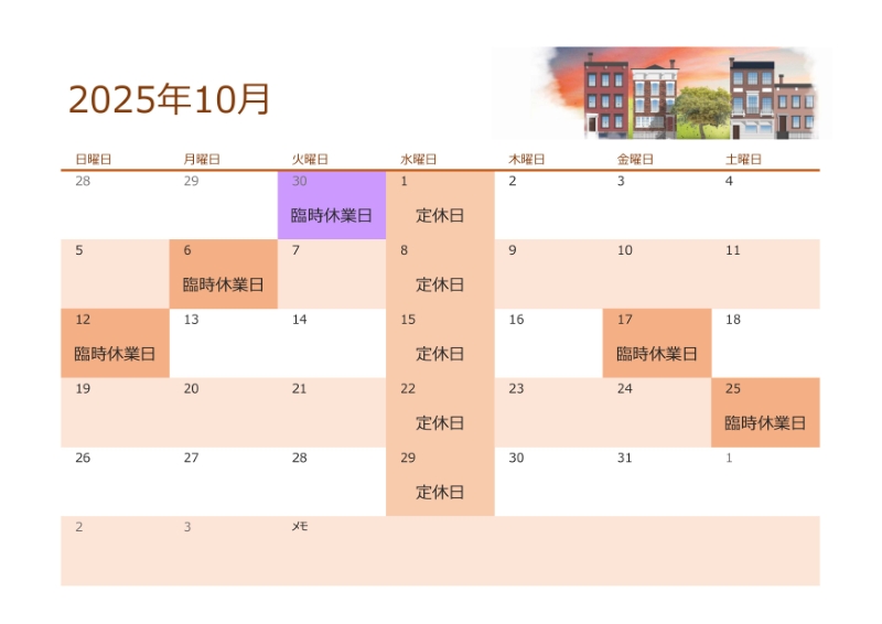 - 営業日案内日中はまだ暑いですが、週末ごとにいろんなイベントがあちこちで開催され秋らしくなってきました。 来月の営業予定をお知らせいたします。来週は9月30日(火)と10月1日(水)が連休となります。上のカレンダーをご参照ください。 […]